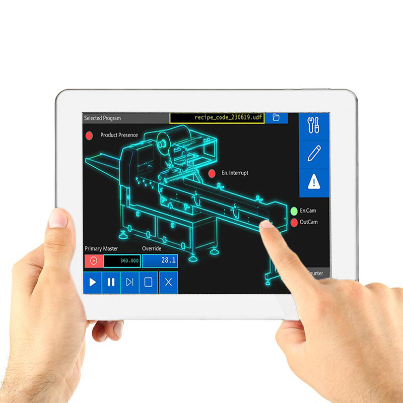 The interface made with Smartpage.net can be replicated on a device connected locally to the machine through wi-fi or remotely through the internet.